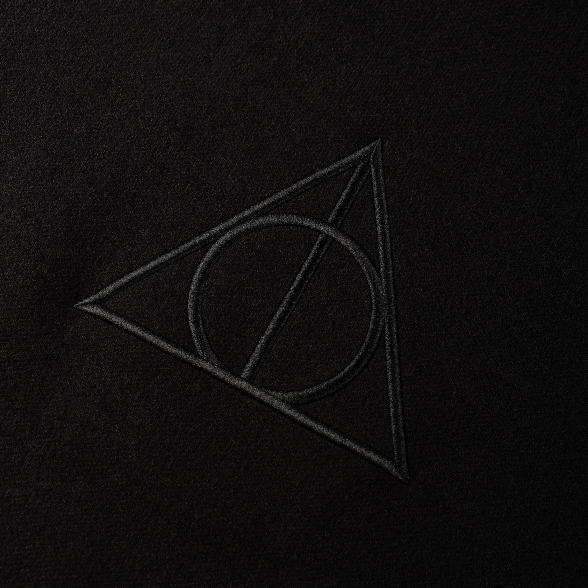 Deathly Hallows symbol embroidery at center chest